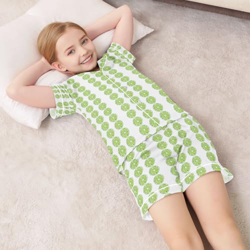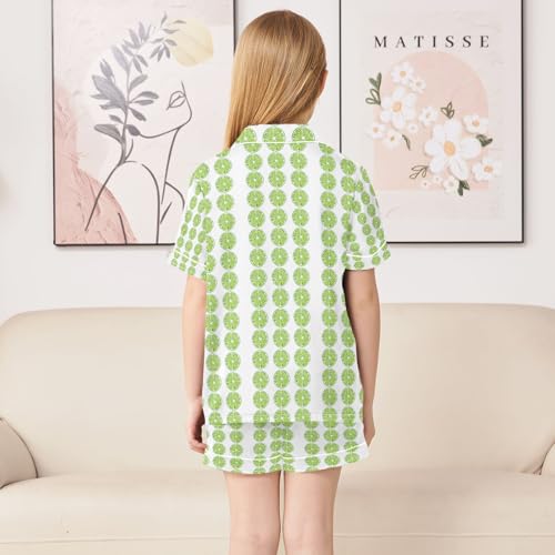 senya Green Lemon Satin Summer Pajama Sets Silk Short Sleeve Button Down Sleepwear
