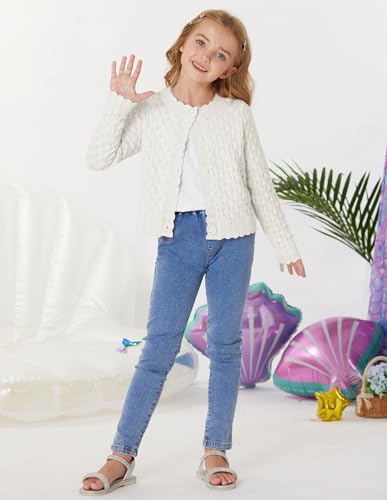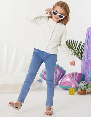 GRACE KARIN Girls Cropped Cardigan Sweaters Long Sleeve Cable Knit Button Front Sweater 5-12Y 6