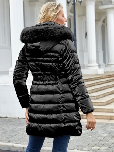 More information about Women's Long Winter Coat Puffer Warm Down Jacket with Detachable Hood Removable Faux Fur Trim Thickened Jacket