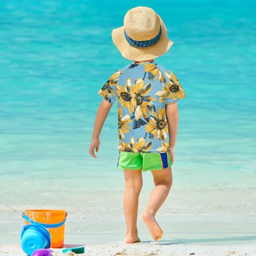 ALAZA Kids Rash Guard Girls Toddler Swim Shirts Short Sleeve Graffiti Yellow Flower UPF 50+ 3T 1