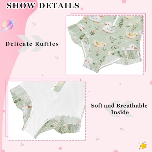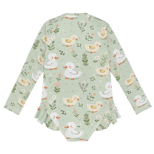Cartoon Duck on Light Green Background Girls Long Sleeve Swimsuit Rash Guard One Piece Bathing Suits Zipper 3-12T