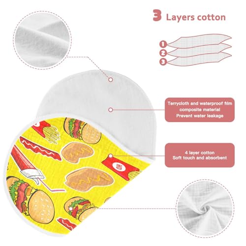 • Premium Material - The Fast Food burp cloth for baby are made of 4 layers of cotton (muslin), Soft and comfortable to the touch, breathable and skin-friendly, for your baby's sensitive skin, highly absorbent and machine washable
