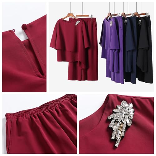 Fabric type: 1OO% PolyesterCare instructions: Machine WashOrigin: ImportedSoft Fabric Women Pant Suits: Plus size 2 pieces dressy pants suits is made of lOO% polyester, no-see through material, machine washable, this plus size two piece sets for curvy women is stretchy and flexible, comfortable to wear.Dressy Design for Dressy Pantsuits: This Plus size elegant pant suits for women features in crew neck, loose-fitting trousers, the cape sleeves and ruffle layers show a flowy feeling, making you moves beautifully, for the rhinestones, you can diy paste to make your look even more sparkly.Plus Size Wedding Outfit:Our plus size wedding guest outfit for women is suitable for bride and groom mothers, bridesmaids and other women, as well as weddings, cocktail parties, family party, hang out or other formal occasions, solve your difficulty in choosing clothes.Matches of the Plus Size Sets: Plus size mother of the bride pant suits can be matched with necklace, bracelet, handbag, high heels, It's also a good gift to your friend or family.Tips for Plus Size Formal Wear: Please iron this dressy wedding gust outfit sets before putting them on. As overlay style, wrinkles may appear in the packaging and folding process, please wear it after ironing at low temperature. Perfect for everyday use. High quality materials and excellent craftsmanship ensure long-lasting durability.