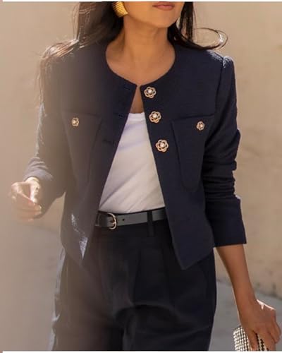 Fabric type: TweedCare instructions: Machine WashOrigin: ImportedFabric: This tweed blazers jackets is made of High quality Polyester fabric.smooth and comfortable lining,breathable,durability,non-irritating,no stretch,This womens blazers will be very popular with office ladiesUnique Design:Open front,pearl and flower button design,regular fit,long sleeves.chest patch pockets with snap button closure.utility pockets,smooth lined,soild color,work professional,elegant casual style.A must-have in women's wardrobesColor Options:The casual professional blazer for womens has exquisite stitching and details that perfectly showcase the craftsmanship,Our tweed jacket refreshes in rich color,Pink Business Casual Outfits For Women/ Navy Formal Work Office Blazer/ Green Womens Blazers For Work Casual Elegant WomenMatch:The open front blazers design adds a modern twist,nice to style with basic tees,crop tops, skirts,dresses, jeans,leggings,shorts,pants, boots,heels,and handbagsFor Various Occasions:You can wear this casual tweed jacket outerwear for a long work day and it's comfortable and looks amazing or business trips and interviews. Perfect for shopping, holiday, travel, date, party, outdoor, street look, daily wear Perfect for everyday use. High quality materials and excellent craftsmanship ensure long-lasting durability.