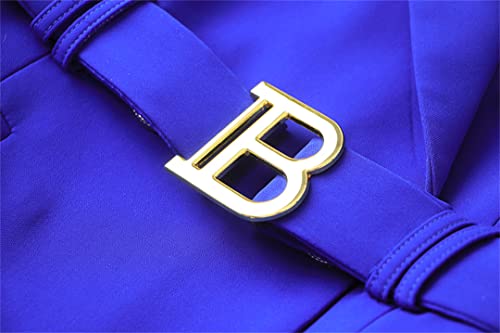 Royal Blue Women Belt Blazer Dress Solid Tie Blazers Elegant Style Office Lady Dresses 5
