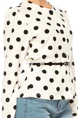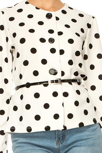 FashionJOA Women's Collarless Button Down Jacket with Belt Accent 1
