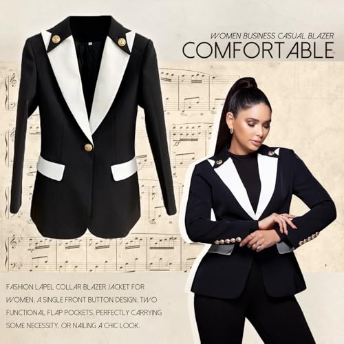 More information about Women Blazer Patchwork Color Formal Single Button Long Sleeve Suit Jacket Business Office Lady Wedding Party Dress