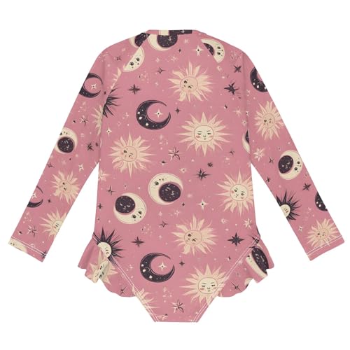 ALAZA Toddler Swimsuit Girl Bathing Suit Swimwear Rash Guard Cute Moon Sun Long Sleeve 3T