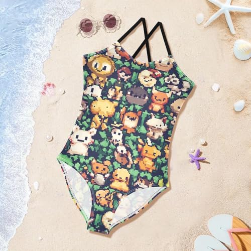 Cartoon Animals Pixel Style Girls Swimsuit One Piece Bathing Suit for Baby Girls' Swimwear 3-10T