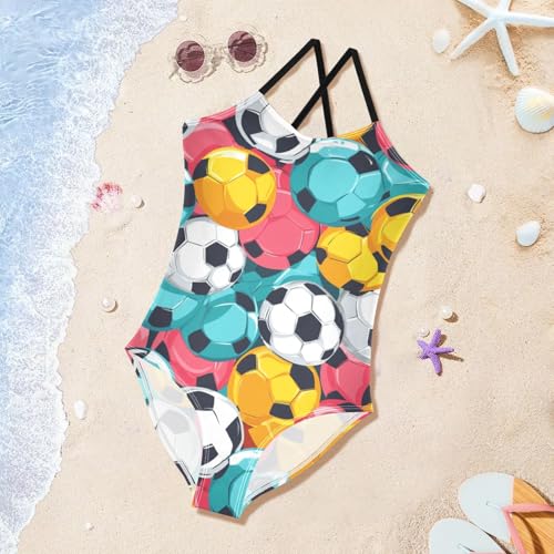 ZZKKO Colorful Footballs Girls Swimsuit One Piece Bathing Suit for Baby Girls' Swimwear 3-10T 3