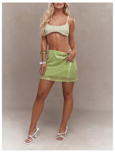 HOT ! SweatyRocks Women's High Waist Y2K Sequin Skirt Sparkle Night Out Party Mini Skirts
