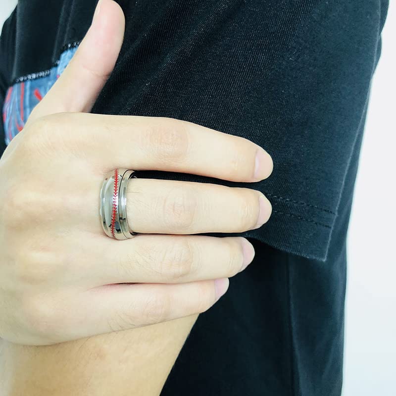 Why Choose Unisex Stainless Steel 8mm Simple Personality Baseball Pattern Rotatable Fidget Ring Domed Style?