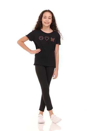 Fabric type: 70% Cotton, 30% PolyesterCare instructions: Machine WashOrigin: ImportedClosure type: Pull OnJust the Right Touch of Sparkle -This 2-pack of ribbed t-shirts from Pink Angel adds a playful shimmer to your daughter’s everyday wardrobe. Each tee features charming rhinestone graphics—like hearts, butterflies, smiley faces, and LOVE lettering—that feel fun without being over the top. They're cute, age-appropriate, and designed to let her personality shine.Made for Comfort and Movement - Crafted from soft, stretch-knit ribbed fabric, these tees move with her and stay comfortable all day long. The lightweight material is breathable and smooth against the skin, making it an easy pick for school, playdates, or relaxing at home.Two Tees, More Flexibility - With two versatile tops in one pack, you're getting more style and more wear without extra effort. It’s a convenient, budget-smart way to build out her wardrobe with fun pieces that still feel practical and wearable.Easy to Pair with Everything - Available in neutral and bright colors like black, white, pink, and grey, these short-sleeve tees go with everything from jeans to leggings to skirts. Whether she’s layering up or wearing them solo, these tops make everyday dressing a breeze.Built to Last, Wash After Wash - Busy moms will appreciate the durability—these tees hold their shape and color, while the sparkle embellishments stay put through repeated washes. No fading, no pilling, no hassle—just reliable everyday wear that still feels special. Perfect for everyday use. High quality materials and excellent craftsmanship ensure long-lasting durability.