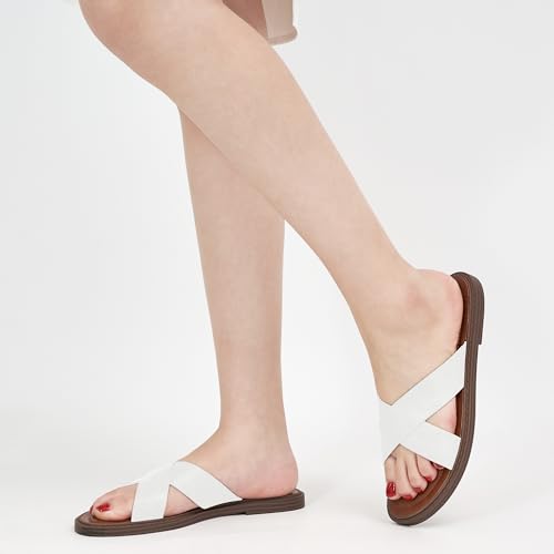 HARENCE Womens Flat Slides Sandals: Dressy Summer Slip On Flats Shoes Comfortable Open Toe Walking Beach Slide Sandal 5