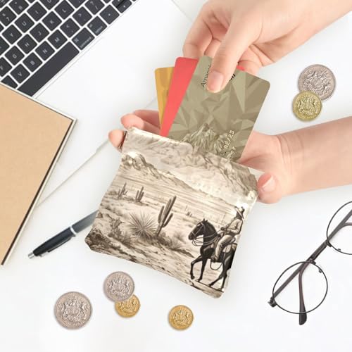 Western Cowboy Theme Coin Purse Leather Pouch Change Purse, Squeeze Coin Pouch for Cards, Keys & Lipsticks, Unisex 1