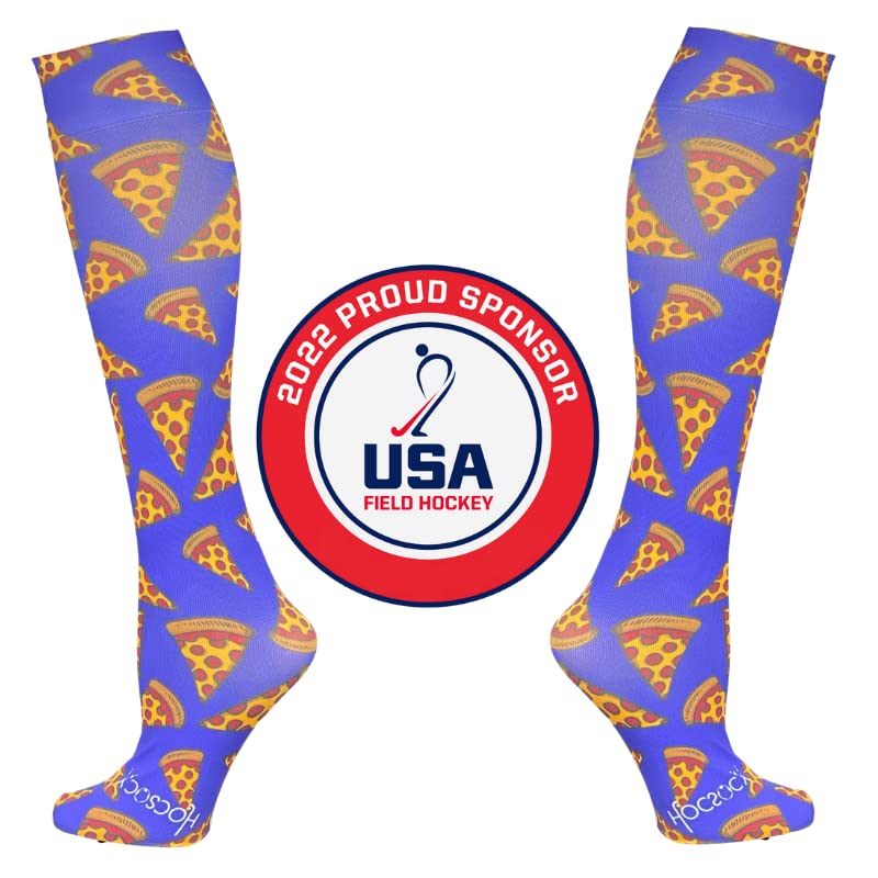 HOT ! Hocsocx Blue Pizza Socks Performance Liner Moisture-Wicking Protection for Field Hockey, Ice Hockey, and Soccer