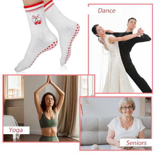 Pilates Grip Socks for Women, Grip Yoga Crew Cute Socks, Embroidery Cotton Sock for Yoga Barre Workout