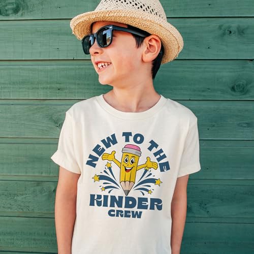 More information about New To The Kinder Crew Kids Shirt - Back To Elementary School Retro Pencil Outfit - Cute Gift For First Day Of Kindergarten Announcement - Natural Toddler & Youth T-Shirt