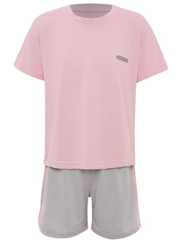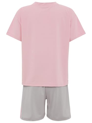 Unisex Kids 2-piece Moisture-wicking Sports Set T-shirt & Shorts Outfit For Athletic Running Pink 9-10 Years 6
