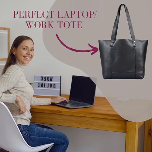 Genuine Leather Tote Bag for Women-Versatile Everyday, Work or Travel Tote w/Wristlet