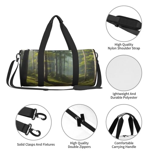 Whispering Woods Printed Travel Bag,Round Personal Item Storage bag,Foldie Duffel Bag for Traveling Vacation,Fitness,Sports