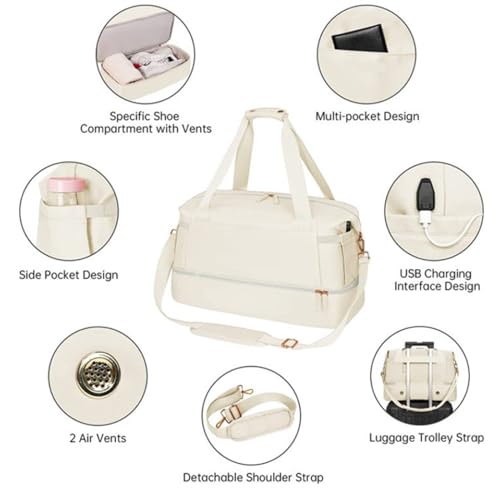 - Shoe Compartment: Travel duffel bags with shoe compartment at The bottom, which can be used for shoes and clothes storage. Separated design is helpful for shoes keeping and ideal for women who need an extra pair of shoes or clothes in specific places.