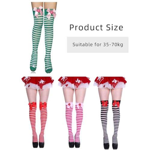 Women Stockings, Sweet Strawberry Bowknot Ribbed Over Knee Socks for Women Christmas Festivals Striped Thigh High 4