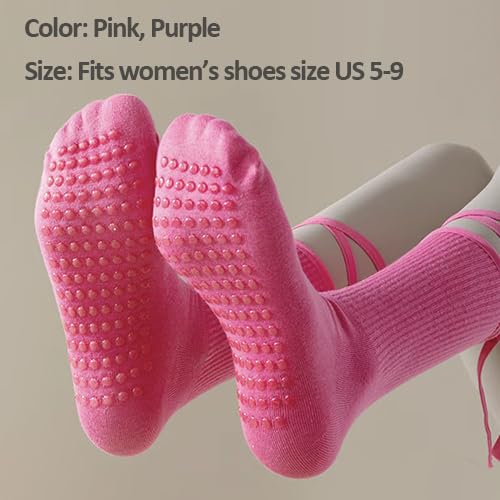 More information about Pilates Socks with Grips for Women Straps Cute Yoga Non Slip Gym Athletic Socks 2 Pairs