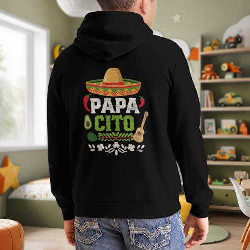 Kids Papacito Family Cinco De Mayo Mexican Dad Boys Girls Lightweight Kangaroo Pocket Fleece Hoodies