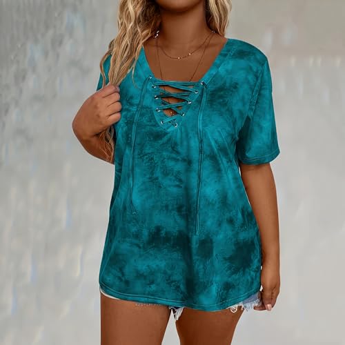 Womens Dressy Tops Short Sleeve Blouses for Women Vneck Lace Oversized Tie Dye Tie Knot Summer Fall Shirts 2025 2