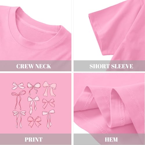 Cute Graphic Shirts for Girls Pink Bow Shirt for Kids Coquette Preppy Clothes Aesthetic Summer Tees Tops for Tweens 7