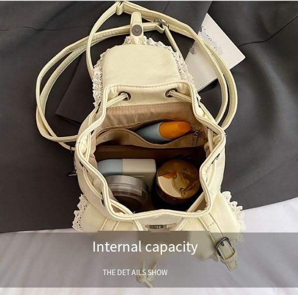 • STYLISH DESIGN: Charming mini backpack featuring delicate lace trim detailing and classic buckle closures for a feminine, vintage-inspired look