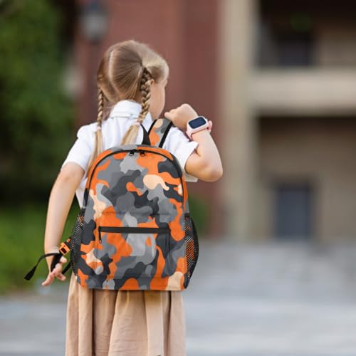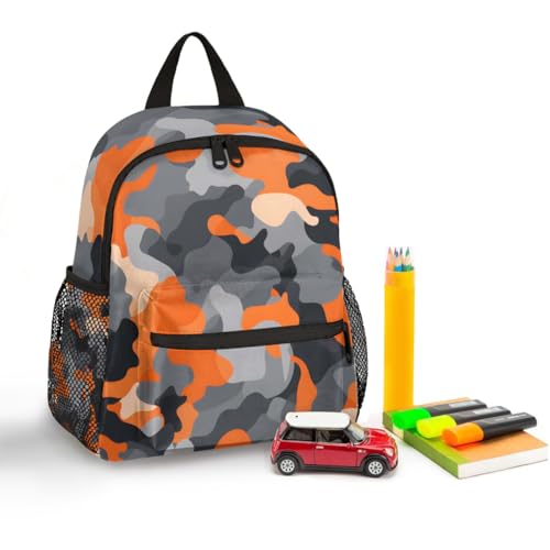 Toddler Backpack for Boys Girls, Orange Grey Black Camo Mini Kids Backpacks with Chest Strap Whistle, Preschool Kindergarten Daypack, Travel Bookbag for Children 7