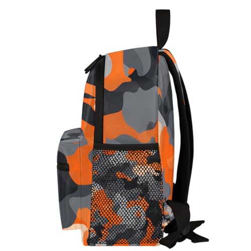 Toddler Backpack for Boys Girls, Orange Grey Black Camo Mini Kids Backpacks with Chest Strap Whistle, Preschool Kindergarten Daypack, Travel Bookbag for Children 1