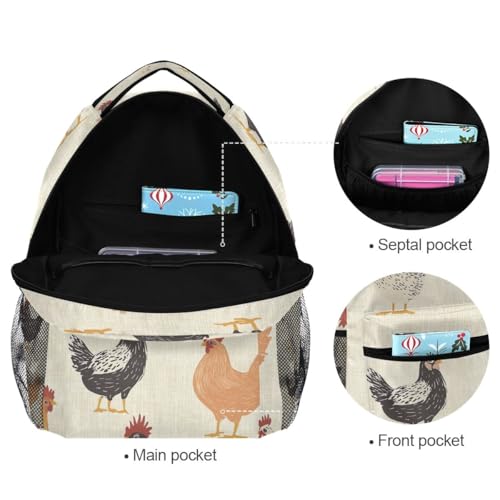 Kids Backpacks, Chickens Yellow Lightweight Travel Bag for Boys Girls Back to School Supplies,16 in 6