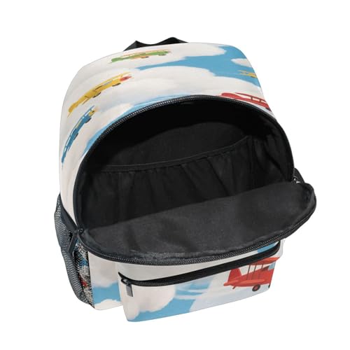Airplane in Clouds Mini Backpack for Girls Bottle Pockets Kids Student Bookbag for Travling S 6