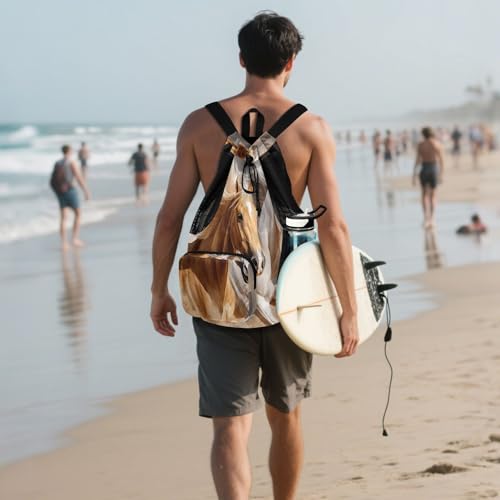 Mesh Gym Swimming Bags for Men & Women, Running Horse Oil Painting Large Drawstring Backpack with Dry-Wet Pocket, Lightweight Gym Bag for Sports, Travel, Beach, Workout Gear 6