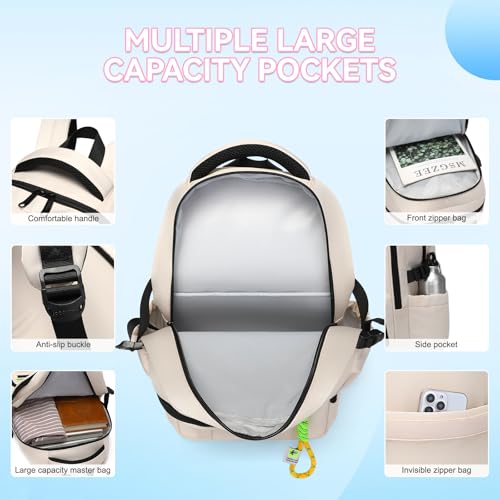 Lightweight Travel Backpacks for Men and Women,Water Resistant Casual Daypack with Large Capacity and Multiple Compartments(Off-White) 5