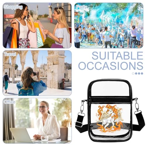 Unicorrn on Fire Clear Crossbody Bag Stadium Bag Adjustable Side Shoulder Bags Messenger Bag with 2 Compartments 6
