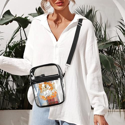 HOT ! Unicorrn on Fire Clear Crossbody Bag Stadium Bag Adjustable Side Shoulder Bags Messenger Bag with 2 Compartments