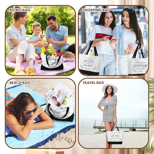 • Suitable Size: the size of these christian cosmetic bags is about 18.5 x 14.96 x 4.33 inches/47 x 38 x 11 cm, which can hold many cosmetics and toiletries; The size of the canvas tote bag is about 8.66 x 7.09 x 1.97 inches/22 x 18 x 5 cm