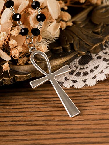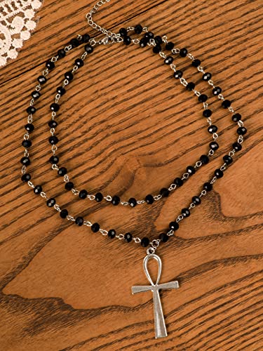 Sacina Layered Black Ankh Cross Choker, Beaded Choker, Gothic Emo Punk Grunge Necklace, Goth Jewelry, Halloween Christmas Jewelry Gift for Women