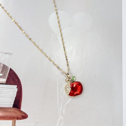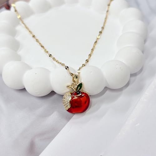 More information about Cute Red Enamel Apple Fruit Pendant Necklace for Women Rhinestone CZ Food Charm Green Leaves Dainty Choker Link Chain Adjustable Lovely Teacher Graduation Fashion Jewelry for Mom Wife Daughter