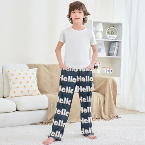 HOT ! Boy's Pants Navy Blue Hello Jogger Pants Elastic Waist Long Bottoms Trousers with Pockets 6-14 Years