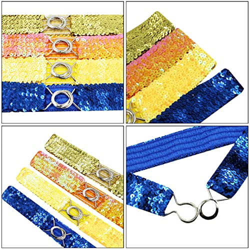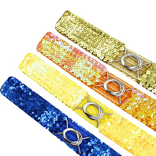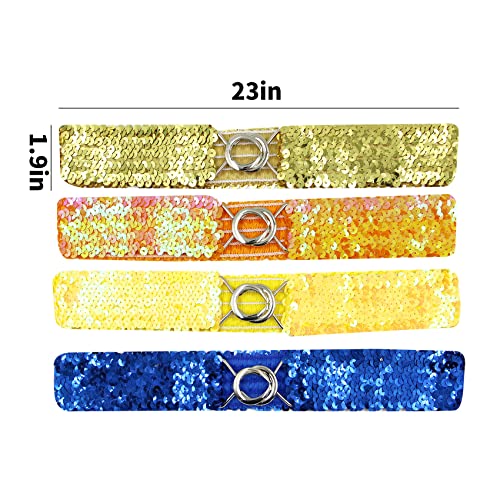 RARITYUS 4 Pack Women Girls Elastic Waist Belt Sparkly Glitter Sequin Decor Metal Buckles Wide Dress Skirts Corset Cinch Belt 4