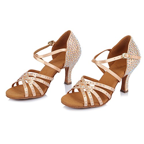 HROYL Women Latin Dance Sandals Rhinestone Salsa Performence Practice Ballroom Professional Dance Shoes,CT404 2