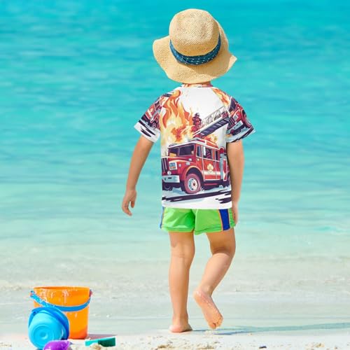Boys Swing Shirts Fire Engine Ambulance Red Rashguard Short Sleeve Kids T-Shirts Sun UPF 50+