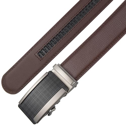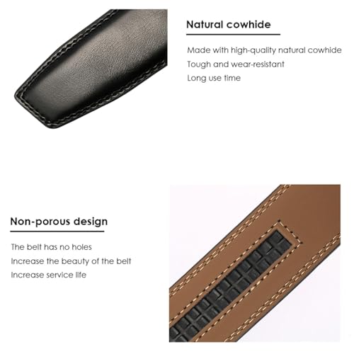 • EASY TO USE BELT FOR MEN:Just slide the dress belt into the sliding buckle and pull leather belt through,the ratchet buckle auto-locks.To release the ratchet belts,gently push the release lever on the side of the automatic buckle and lock will snap. Simple,smooth and sleek