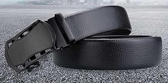KM-EXPORT Men's Faux Leather Belt Automatic Buckle (Black;Free Size) (Pack of 1) 5