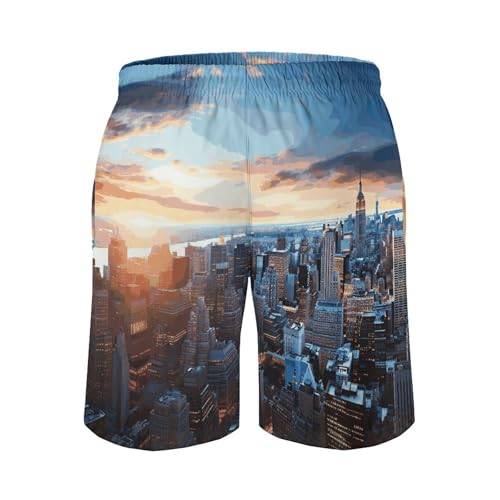 HOT ! Men's New York City Skyline Swim Trunks, Quick-Dry Beach Shorts, Bathing Suit with Mesh Lining and Pocket